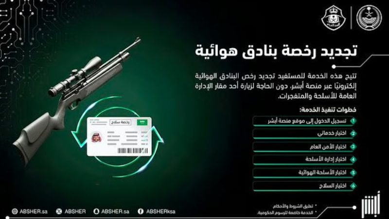 6 خطوات لتجديد رخصة البنادق الهوائية إلكترونيًا عبر أبشر