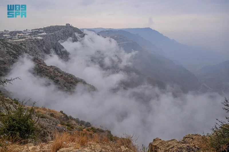 الأمطار والغيوم تحوّل الباحة إلى لوحة شتوية ساحرة