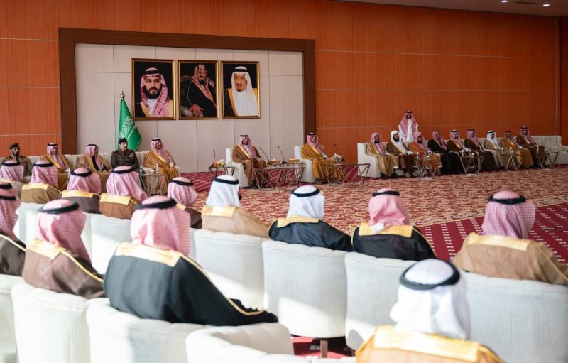 وكان لأهالي المنطقة كلمة أثناء اللقاء رفعوا فيها الشكر لخادم الحرمين الشريفين، وسمو ولي عهده الأمين -حفظهما الله- على ما يوليانه من رعاية ودعم لكل ما يسهم في تعزيز أمن الوطن وازدهاره.