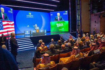 كما ألقى فخامة الرئيس الأمريكي كلمة خلال المنتدى، قال فيها: أشكر صديقي هذا الرجل العظيم ولي العهد الأمير محمد بن سلمان بن عبدالعزيز على قيادته الجريئة والتزامه العميق بالروابط بين بلدينا، بالأمس حضينا بزيارة مذهلة في البيت الأبيض احتفالاً بالترابط الذي دام ثمانين عامًا بين الولايات المتحدة الأمريكية والمملكة العربية السعودية.