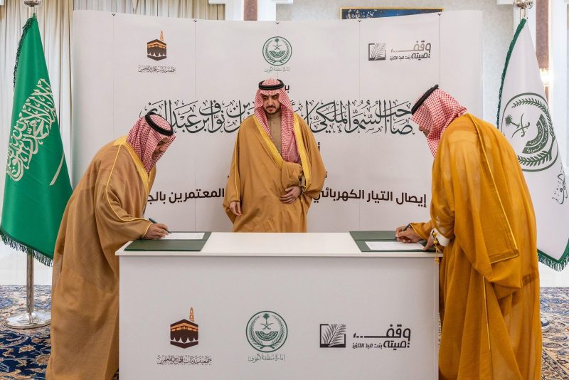 وعقب الاستقبال، رعى سموّه توقيع عقد إيصال التيار الكهربائي لمدينة الحجاج والمعتمرين بمركز الشقيق بمحافظة دومة الجندل، ضمن المبادرات الهادفة إلى تطوير البنية التحتية وتحسين الخدمات المقدّمة لضيوف الرحمن.