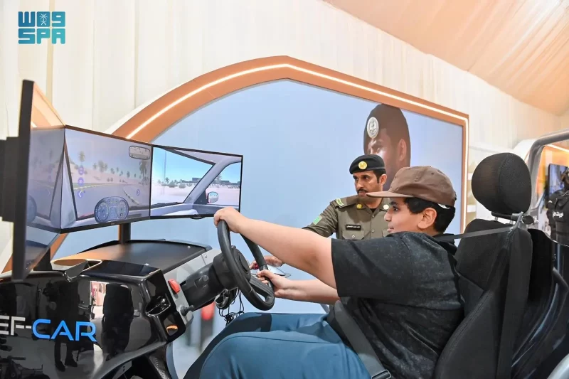 المرور يتيح لزوّار مهرجان الملك عبدالعزيز للإبل تجربة القيادة الآمنة عبر جهاز محاكاة