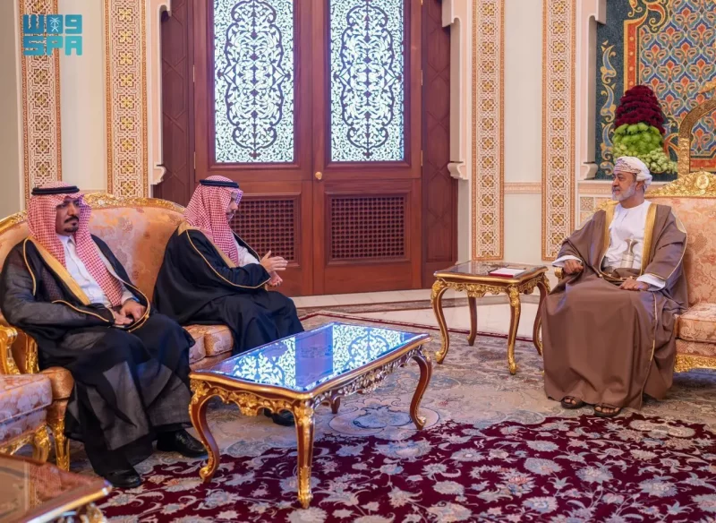 استقبل جلالة السلطان هيثم بن طارق سلطان عُمان، في قصر البركة بالعاصمة العُمانية مسقط، اليوم، صاحب السمو الأمير فيصل بن فرحان بن عبدالله وزير الخارجية.