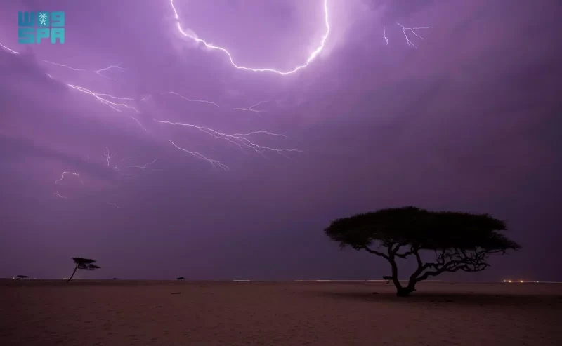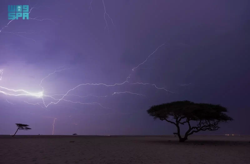 وتوقّع المركز الوطني للأرصاد في تقريره عن حالة الطقس هذا اليوم -بمشيئة الله-، هطول أمطار رعدية غزيرة تؤدي إلى جريان السيول مصحوبة بزخات من البرد ورياح نشطة تحد من مدى الرؤية الأفقية على أجزاء من مناطق الحدود الشمالية، الجوف، تبوك، المدينة المنورة.