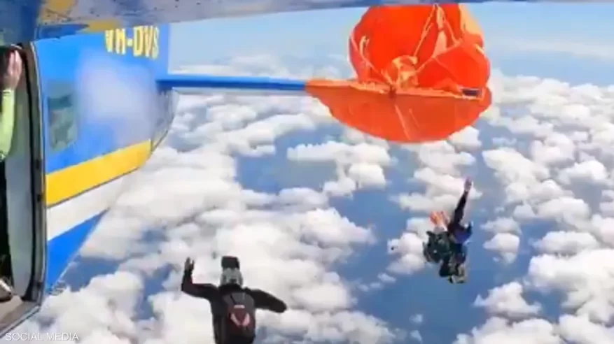 وأظهر مقطع متداول على مواقع التواصل الاجتماعي لحظة اصطدام القافز بالطائرة، ما تسبب في التفاف المظلة حول ذيلها وبقائه معلقاً في الهواء، بينما سقط المصوّر الذي كان يرافقه في هبوط حر.