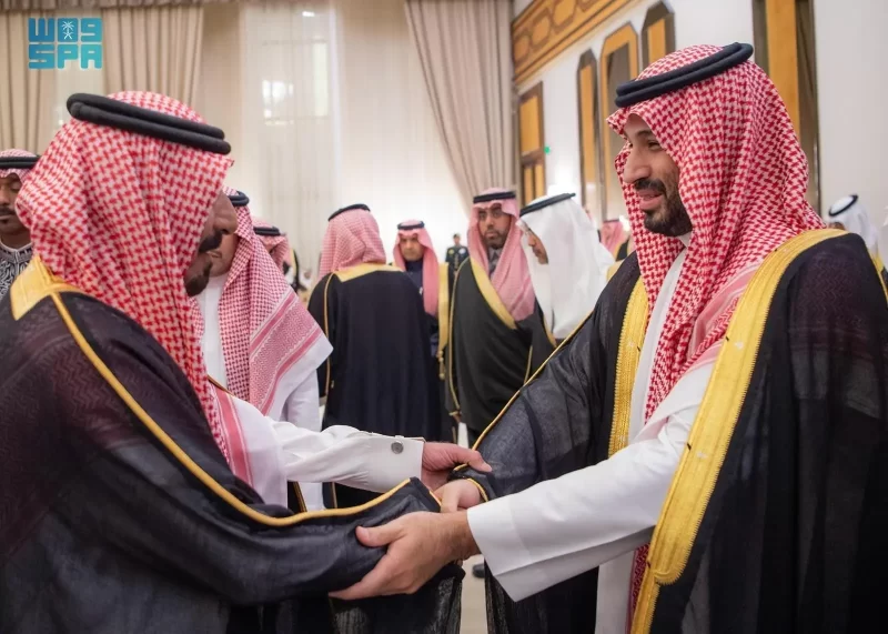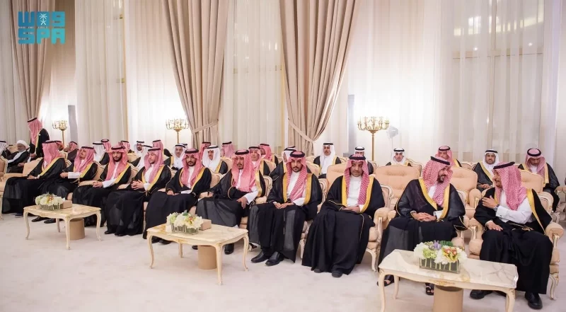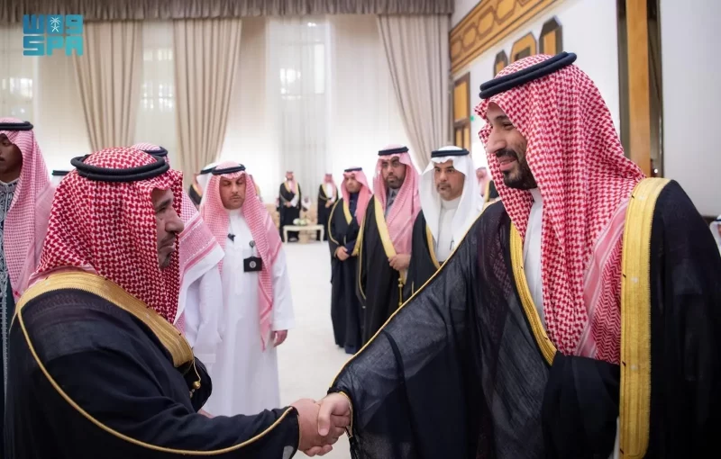 ولي العهد يستقبل الأمراء والفضيلة العلماء والمعالي وجمعًا من المواطنين