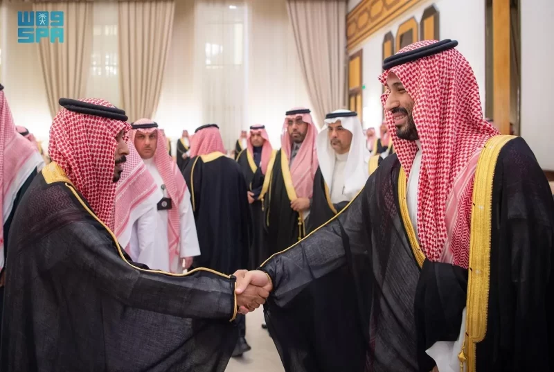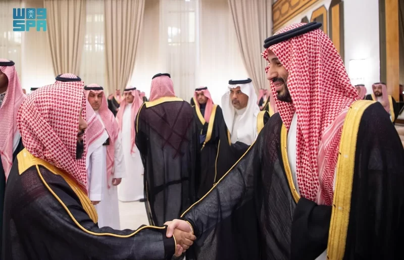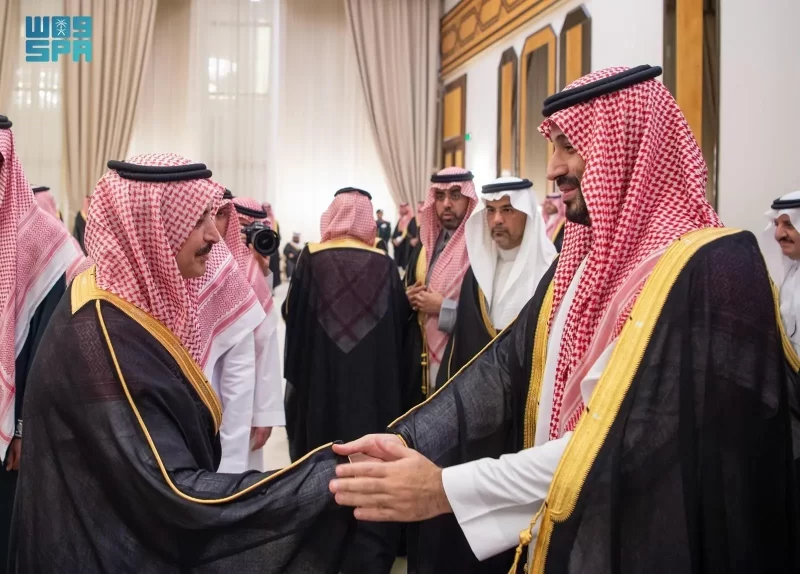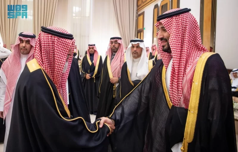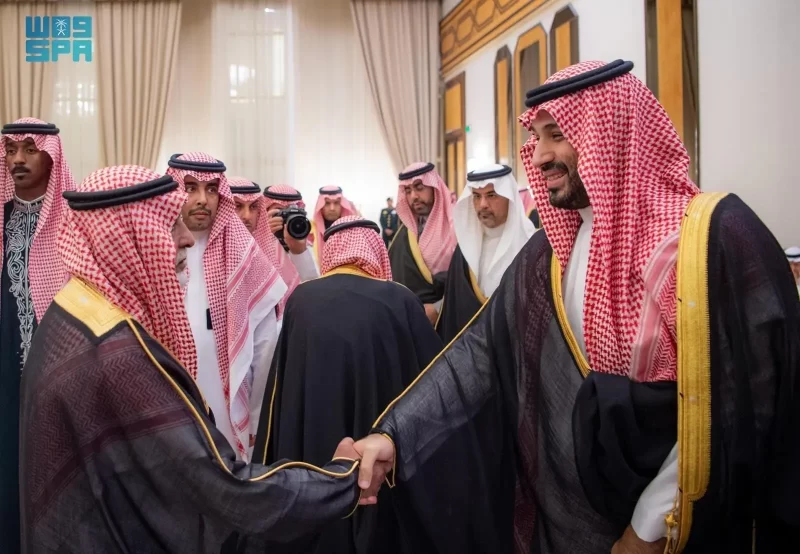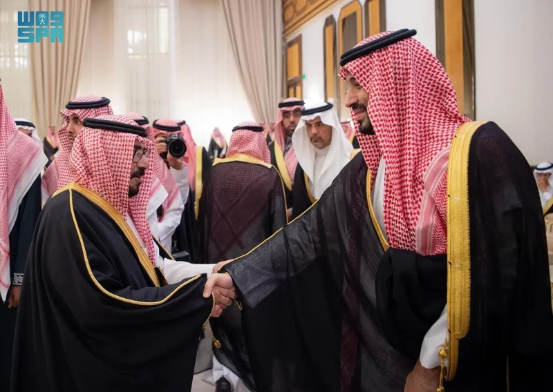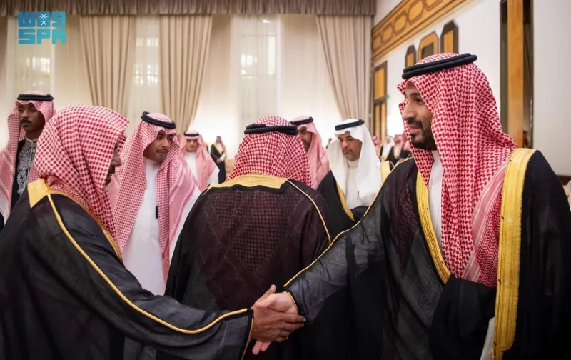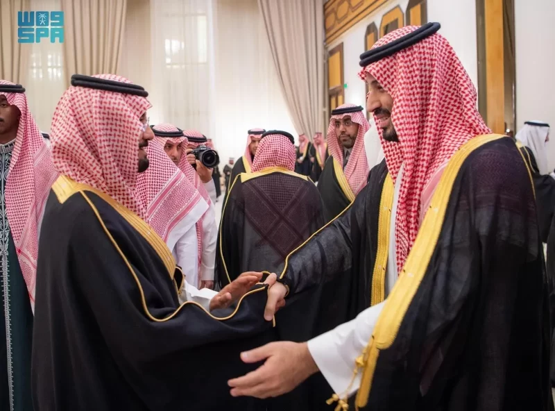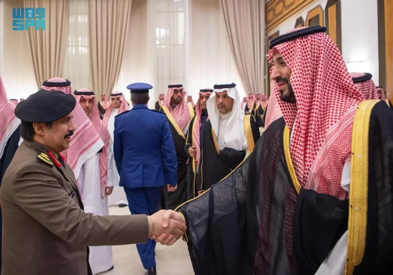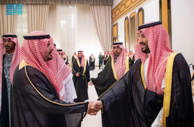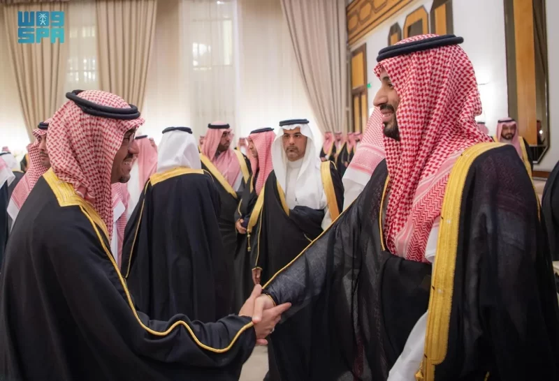 ولي العهد يستقبل الأمراء والفضيلة العلماء والمعالي وجمعًا من المواطنين