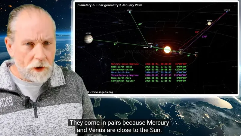 وفي فيديو جديد على حسابه في “يوتيوب”، قال الراصد الهولندي المثير للجدل بسبب تنبؤاته التي عادة ما تثير الكثير من اللغط بين علماء الجيولوجيا، إن الظاهرة الفلكية ستبدأ في السادس من شهر يناير (كانون الثاني)، بسبب اصطفاف خماسي فريد من نوعه يضم المريخ والزهرة والشمس والأرض والمشتري.
