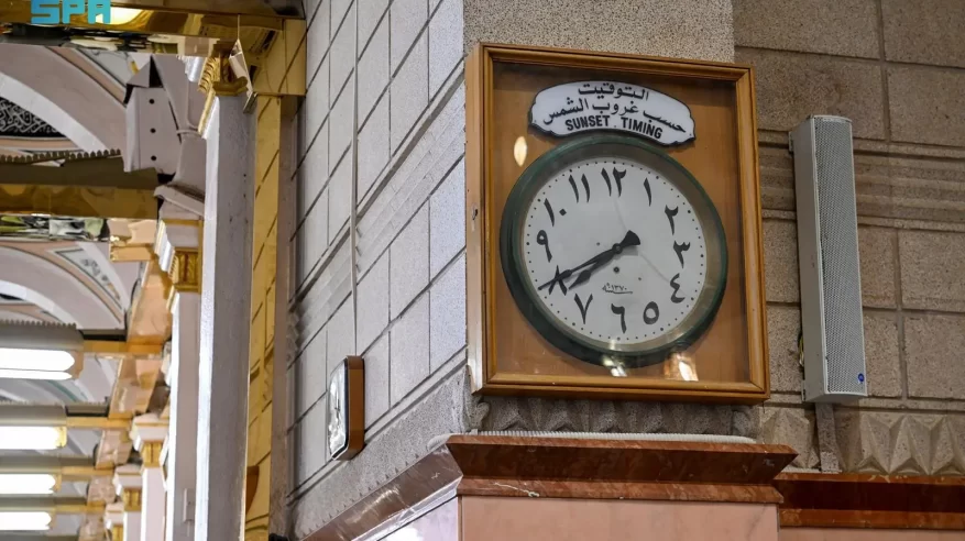 تحتضن أروقة المسجد النبوي ساعةً تراثيةً يزيد عمرها على ثمانين عامًا، ما تزال تعمل بنظام التوقيت “الزوالي”، الذي يعتمد على احتساب الوقت وفق حركة الشمس ولحظة الزوال، في صورة تجسّد جانبًا من الإرث الزمني المرتبط بضبط أوقات الصلاة.