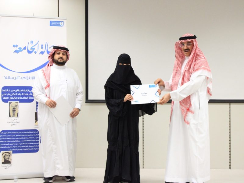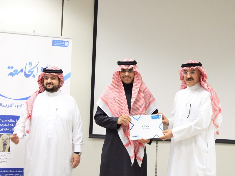 برعاية وحضور عميد كلية العلوم الإنسانية والاجتماعية بجامعة الملك سعود، الدكتور عبدالوهاب بن محمد ابا الخيل، أُقامت صحيفة رسالة الجامعة حفل تكريم لأكثر من 30 طالبًا وطالبة من المتدربين المتميزين في صحيفة رسالة الجامعة، وذلك تقديرًا لجهودهم وإنجازاتهم خلال فترة التدريب.