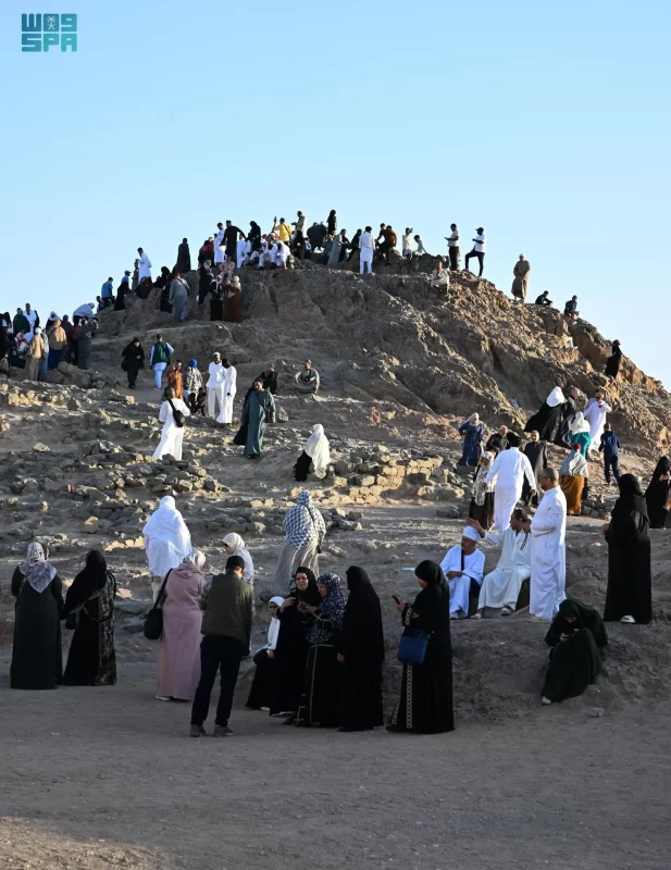 وتوافد الزوار إلى الجبل وصعدوا إلى قمته قبل أذان المغرب، حيث حرصوا على الوقوف في الموقع الذي تمركز فيه الرماة، وتَأَمّلِ امتداد ساحة المعركة، واستذكار التوجيه النبوي الذي أسهم في حماية صفوف المسلمين في بداية المواجهة.