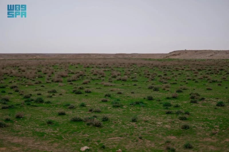 ازدانت الرياض والقيعان شرق محافظة رفحاء، بمنطقة الحدود الشمالية باللون الأخضر، لترسم لوحة إبداعية من الجمال، بألوان الربيع الخلابة المتنوعة التي غيرت ملامح الفياض وزادتها جمالًا، في دلالة على قدوم تباشير الربيع.