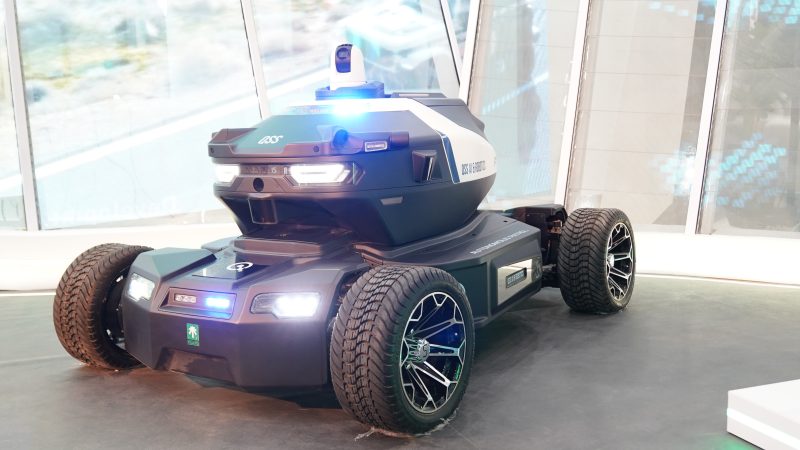 وتحتوي المركبة على كاميرات مراقبة أمنية مدعومة بتقنيات الذكاء الاصطناعي لتنفيذ مهام حماية المنشآت الحيوية ذاتيًا وتعزيز القدرات الأمنية.