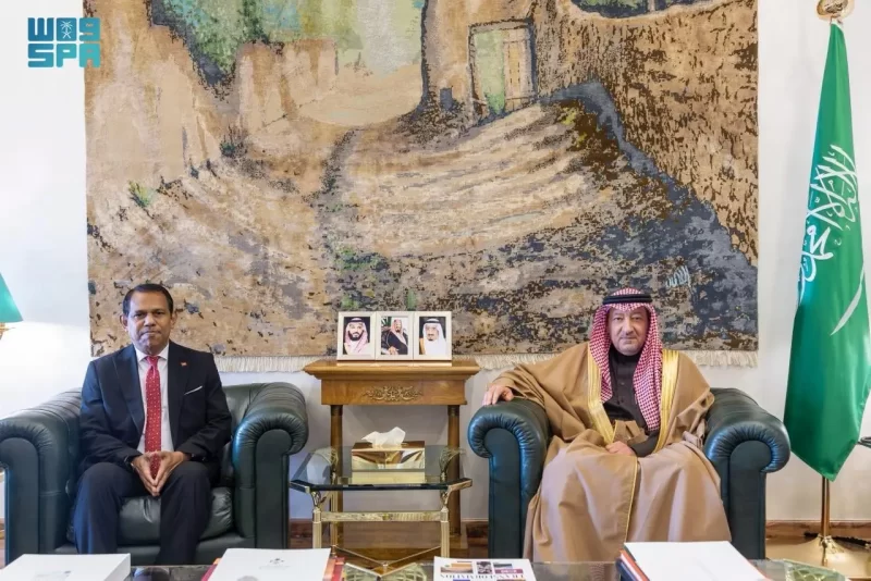 تسلم الرسالة معالي نائب وزير الخارجية المهندس وليد بن عبدالكريم الخريجي، خلال استقباله في مقر الوزارة بالرياض اليوم، سفير جمهورية المالديف لدى المملكة أحمد سرير.