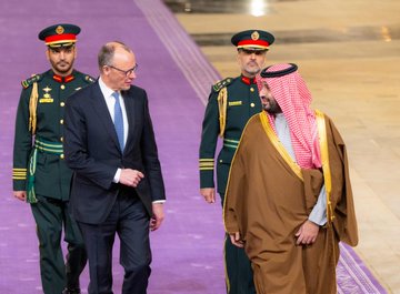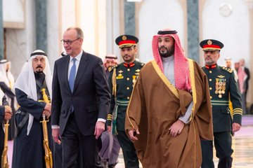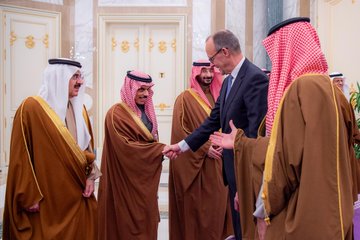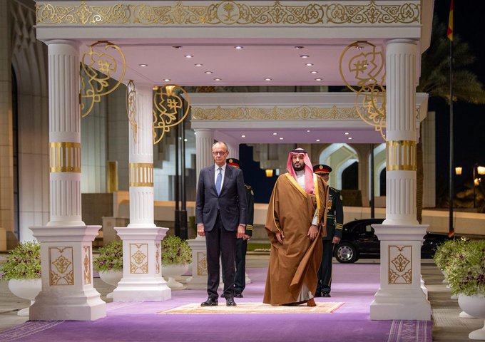 استقبل صاحب السمو الملكي الأمير محمد بن سلمان بن عبدالعزيز آل سعود ولي العهد رئيس مجلس الوزراء، في الديوان الملكي في قصر اليمامة بالرياض مساء اليوم، دولة المستشار الاتحادي لجمهورية ألمانيا الاتحادية فريدريش ميرتس.