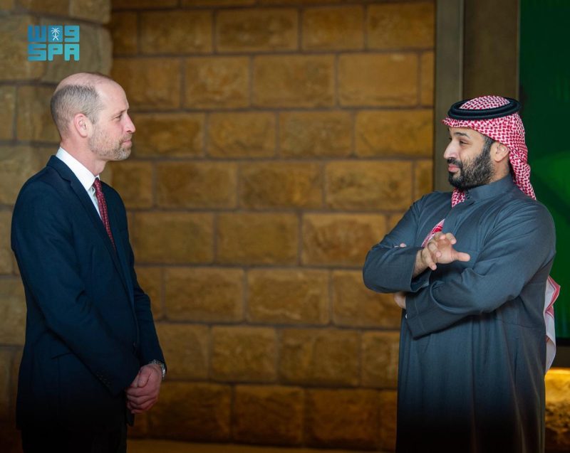 استقبل صاحب السمو الملكي الأمير محمد بن سلمان بن عبدالعزيز آل سعود، ولي العهد رئيس مجلس الوزراء، في الدرعية مساء اليوم، صاحب السمو الملكي الأمير ويليام أمير ويلز ولي عهد المملكة المتحدة لبريطانيا العظمى وإيرلندا الشمالية.