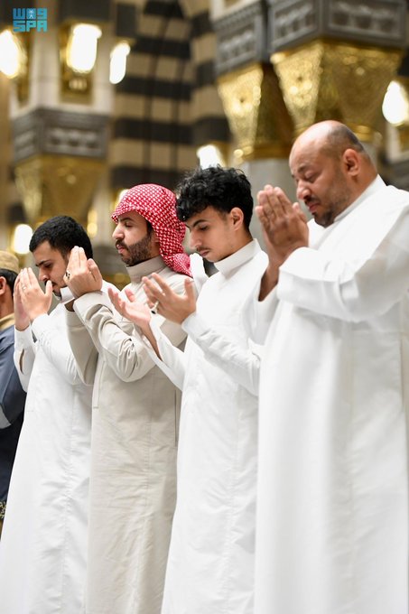 وأمّ المصلين إمام وخطيب المسجد النبوي الشيخ صلاح البدير، الذي دعا للمسلمين في هذه الليلة المباركة بالمغفرة والعتق من النار، وأن يحفظ الله المملكة وبلاد المسلمين من كل سوء، وأن يديم عليهم الأمن والاستقرار، وأن يحفظ ولاة الأمر ويوفقهم لما فيه خير الإسلام والمسلمين.