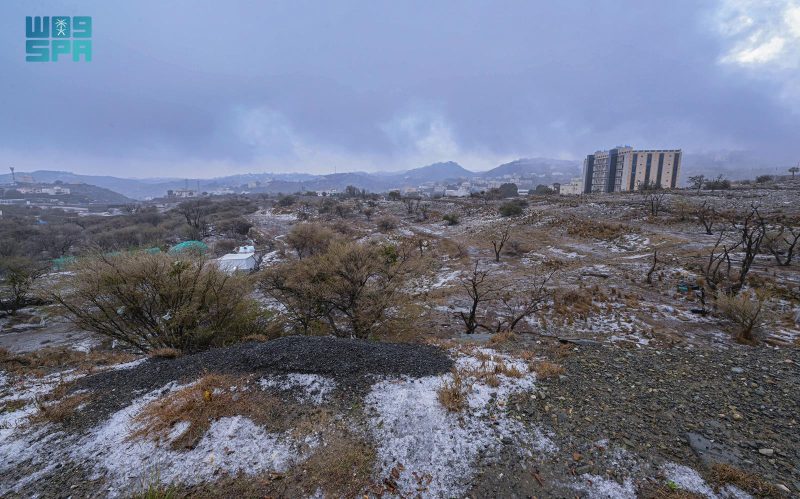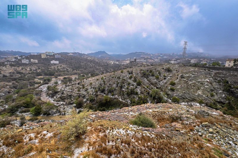 وامتدت آثار الحالة المطرية إلى المرتفعات والمناطق المفتوحة، حيث غطّى البَرَد مساحات واسعة من الأراضي، واختلطت حباته بمياه الأمطار الجارية، ما أسهم في إبراز التشكيلات الطبيعية والتضاريس الجبلية التي تتميز بها المنطقة.