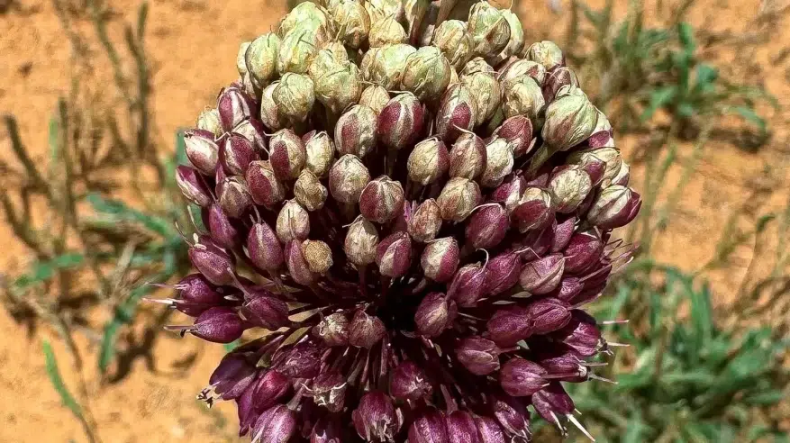 رُصد نبات الكراث البري “Allium atroviolaceum” في عددٍ من المواقع الرملية بمنطقة القصيم، مع نهاية موسم الأمطار، في مشهدٍ طبيعي يعكس تنوع الغطاء النباتي الذي تزخر به البيئة الصحراوية في المنطقة خلال فصل الربيع، ويبرز قدرة النباتات البرية على التكيف مع الظروف المناخية المختلفة.