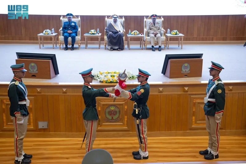 وكرّم سمو نائب وزير الدفاع الطلبة المتفوقين، وتقلّد الخريجون رتبَهم العسكرية، والتُقطت الصورة التذكارية لسموه مع الخريجين، واختُتم الحفل بعزف السلام الملكي.