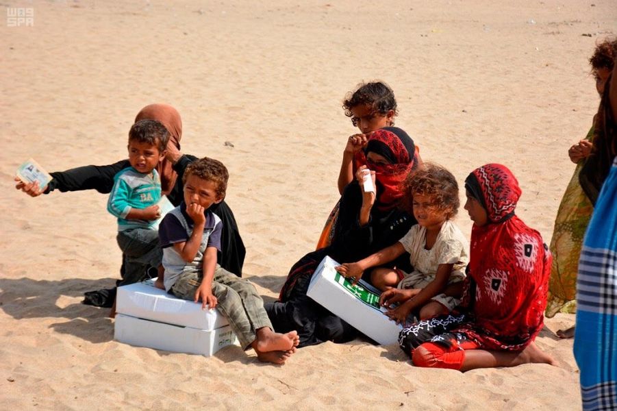 مركز الملك سلمان للإغاثة يوزع 8500 كرتون تمر للنازحين بصحراء العبر من صعدة والجوف