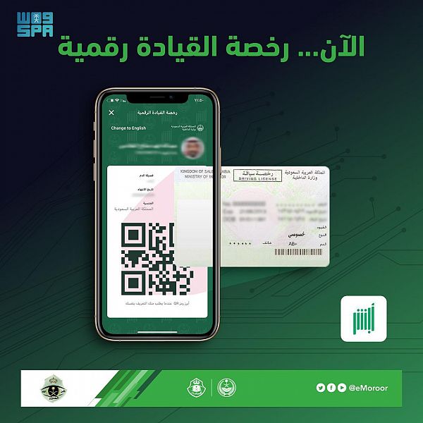 المرور يطلق رخصة القيادة الرقمية عبر تطبيق أبشر وتطبيق توكلنا
