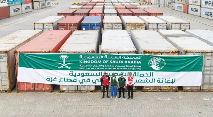 وصول الباخرة الثالثة من الجسر البحري السعودي لإغاثة أهالي غزة