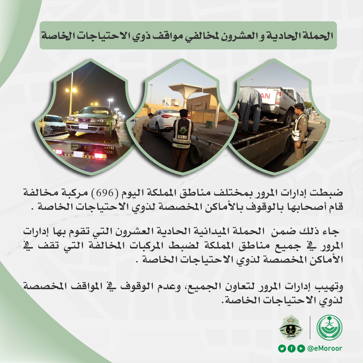 في يوم واحد.. ضبط 696 مركبة وقف أصحابها بأماكن ذوي الاحتياجات الخاصة