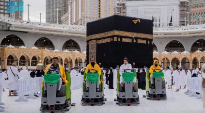 تجفيف صحن المطاف بعد أمطار المسجد الحرام