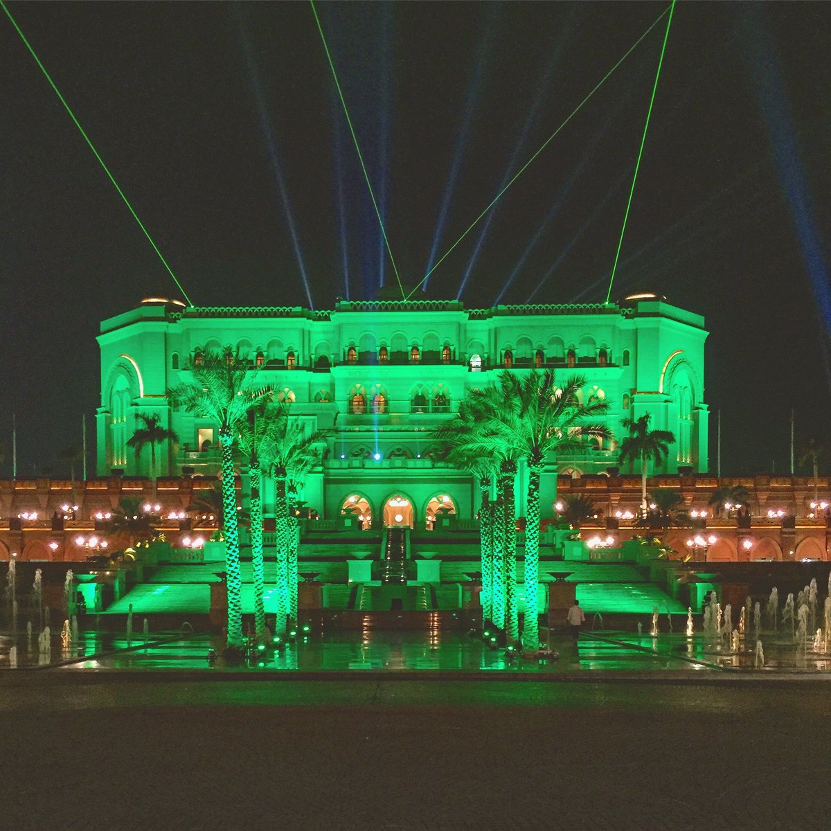 بالصورة.. قصر الإمارات يتوشح باللون الأخضر ترحيباً بالملك سلمان